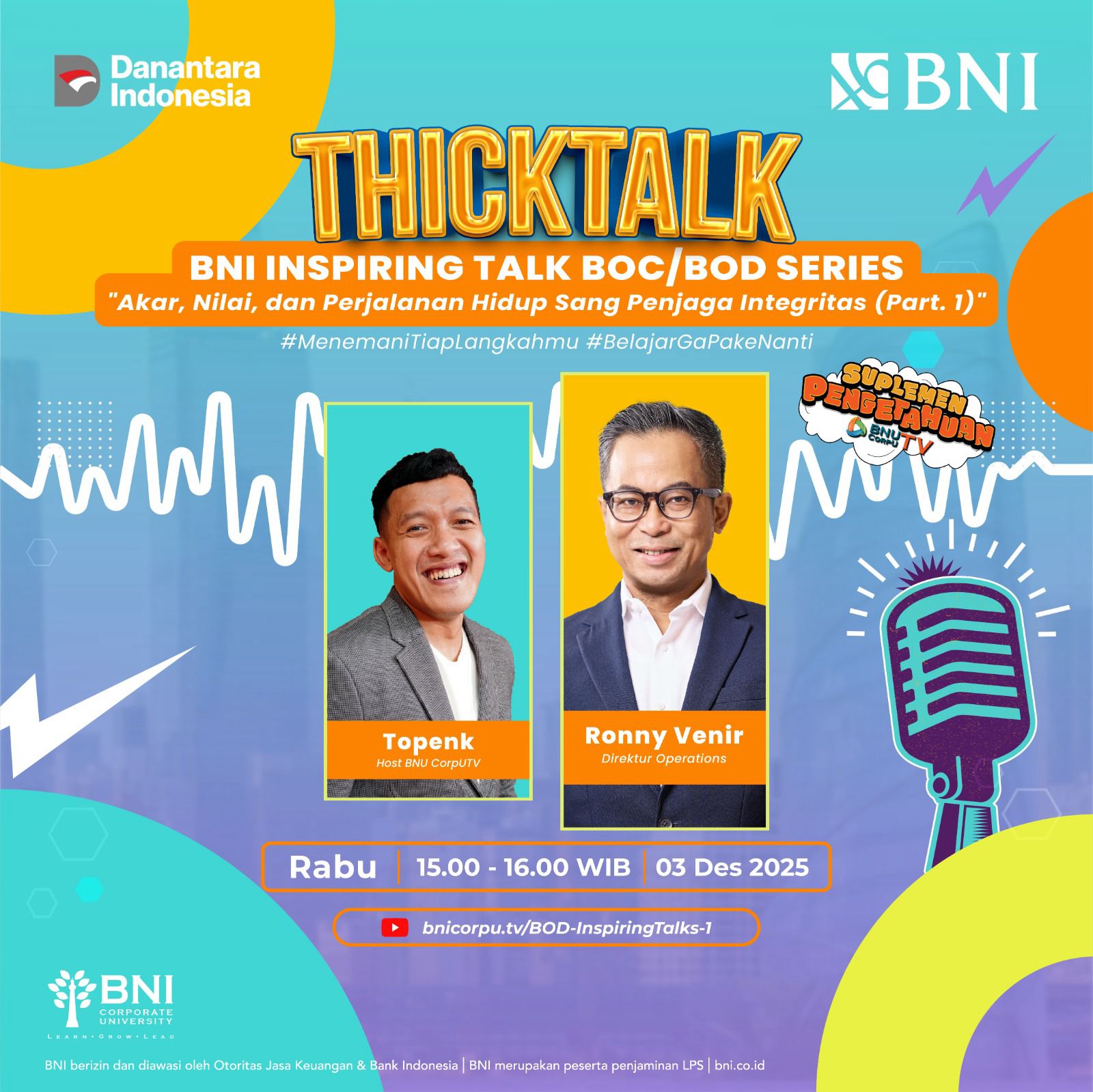 Suplemen Pengetahuan BNI CorPU TV : BNI INSPIRING TALK BOC/BOD SERIES -"Akar, Nilai, dan Perjalanan Hidup Sang Penjaga Integritas”
