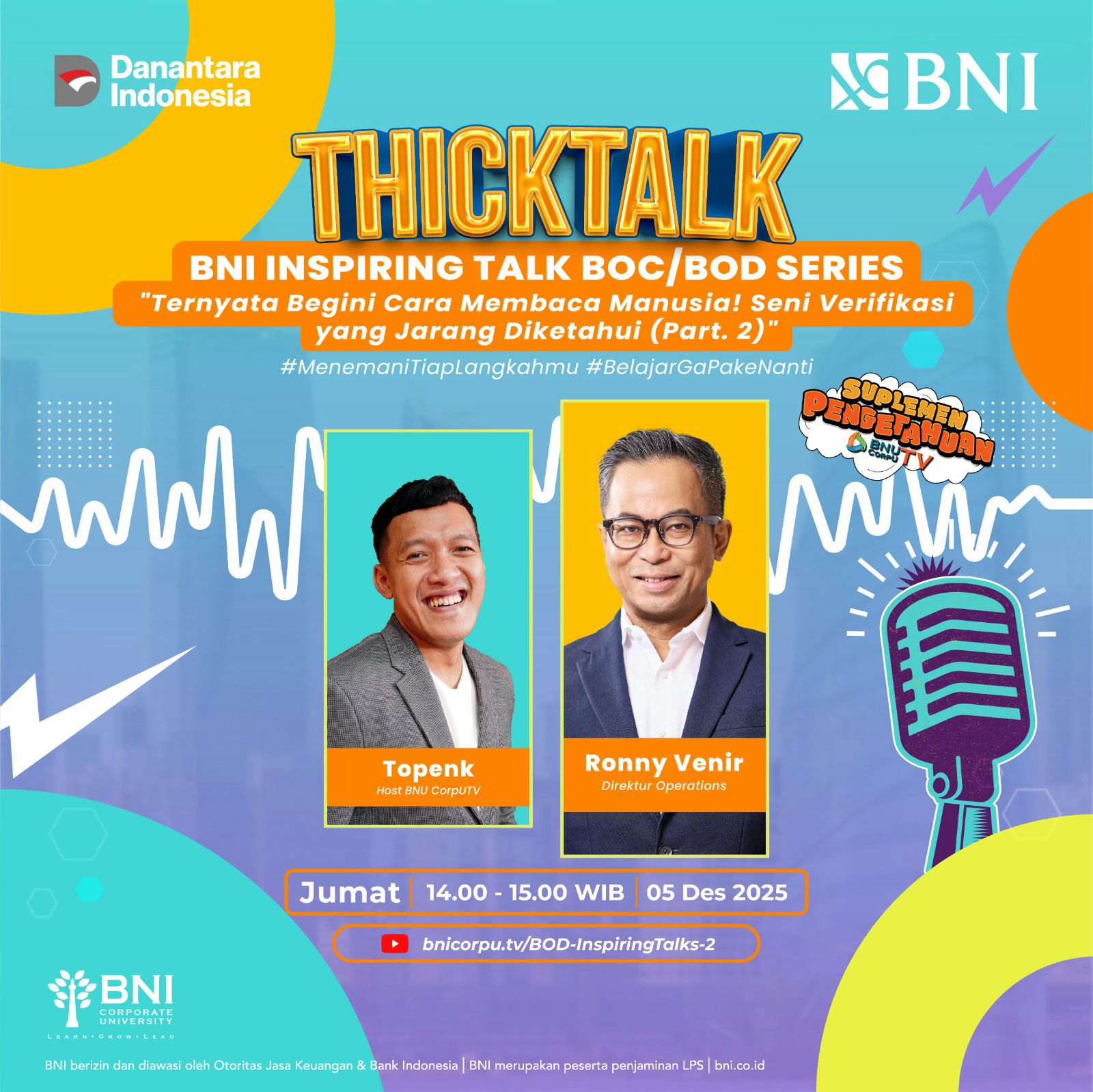 Suplemen Pengetahuan BNI CorpU TV : Part 2: BNI INSPIRING TALK BOC/BOD SERIES - “Ternyata Begini Cara Membaca Manusia! Seni Verifikasi yang Jarang Diketahui”