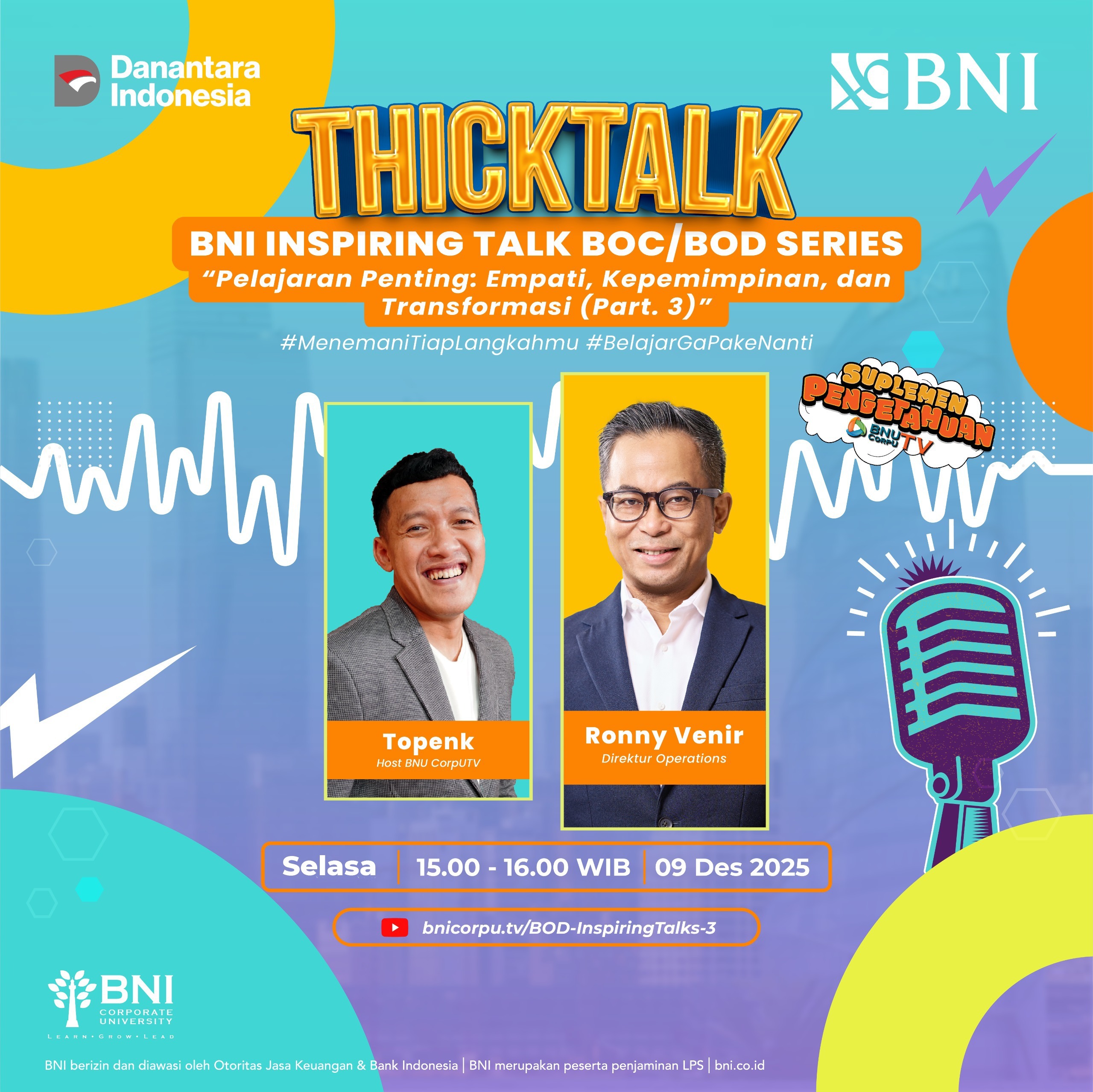 Supplemen Pengetahuan BNI CorpU TV : Part 3: BNI INSPIRING TALK BOC/BOD SERIES - “Pelajaran Penting: Empati, Kepemimpinan, dan Transformasi”