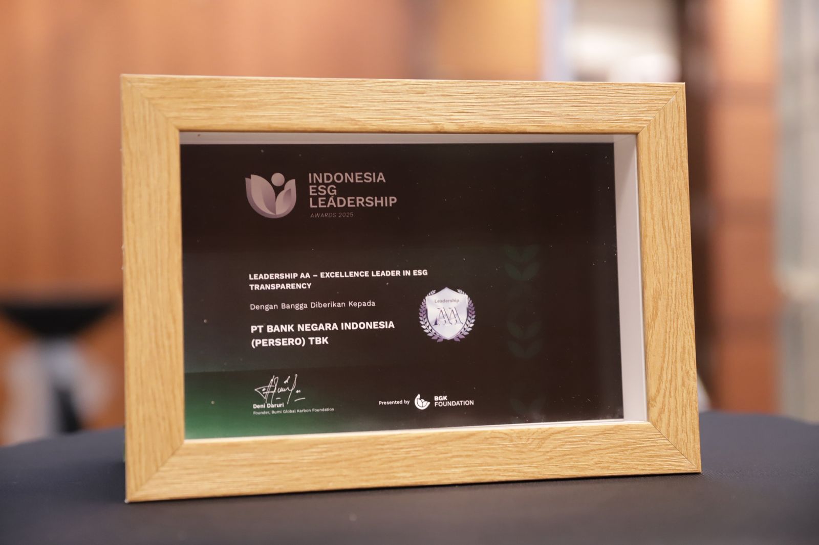 Komitmen PT Bank Negara Indonesia (Persero) Tbk atau BNI terhadap penerapan prinsip Environmental, Social, and Governance (ESG) kembali mendapat pengakuan nasional. BNI meraih penghargaan Leadership AA – Excellence Leader in ESG Transparency dalam ajang Indonesia ESG Leadership Awards 2025, yang diselenggarakan oleh Bumi Global Karbon (BGK) Foundation di Soehanna Hall, The Energy Building, SCBD Jakarta, pada Rabu (12/11/2025).