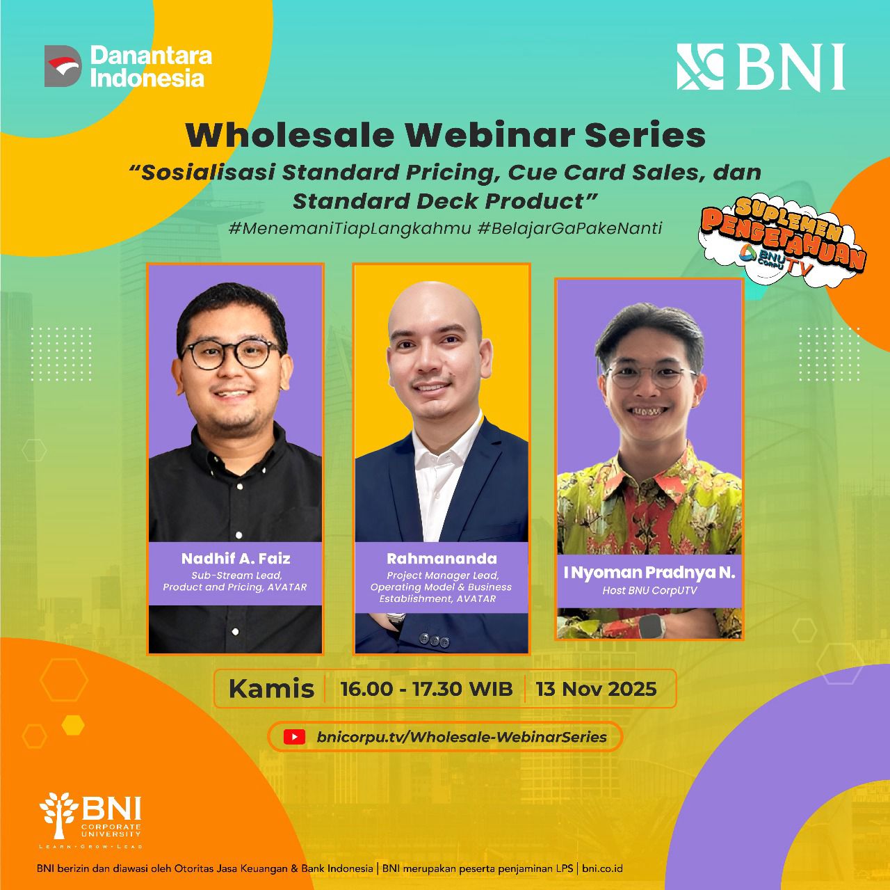 Supplemen Pengetahuan BNI CorpU TV : Wholesale Webinar Series: Sosialisasi Standard Pricing, Cue Card Sales, dan Standard Deck Product