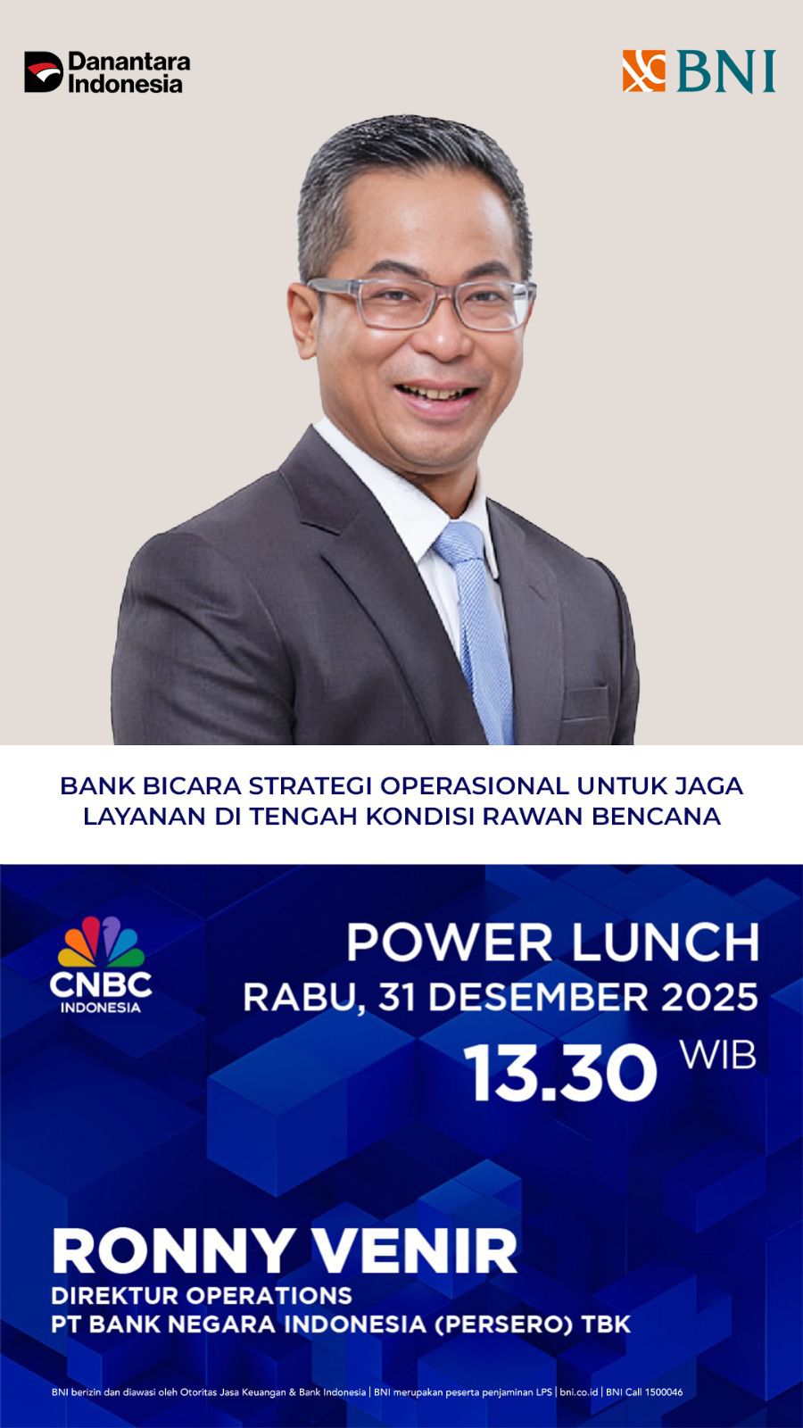 BNI Hi-Movers, yuk saksikan Power Talk Lunch CNBC bersama Direktur Operation, Bapak Ronny Vennir